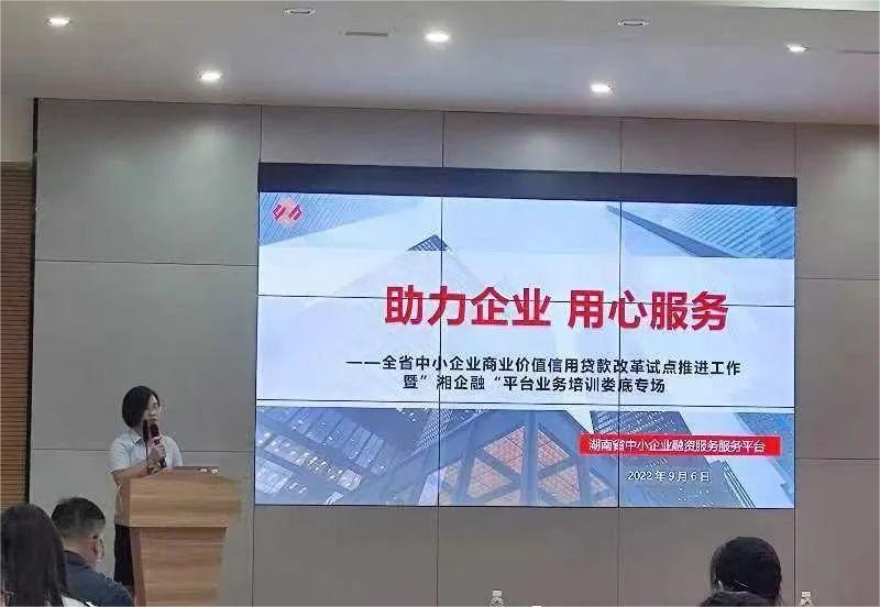 2022年9月6日下午,湖南省中小企業(yè)商業(yè)價(jià)值信用貸款改革暨“湘企融”平臺(tái)業(yè)務(wù)及融資服務(wù)能力提升培訓(xùn)活動(dòng)在婁底經(jīng)開區(qū)創(chuàng)新大廈六樓舉行。此次活動(dòng)由湖南省工信廳指導(dǎo),省中小企業(yè)服務(wù)中心、市工信局主辦,湖南省中小企業(yè)融資股份有限公司承辦,市中小企業(yè)公共服務(wù)平臺(tái)協(xié)辦。
